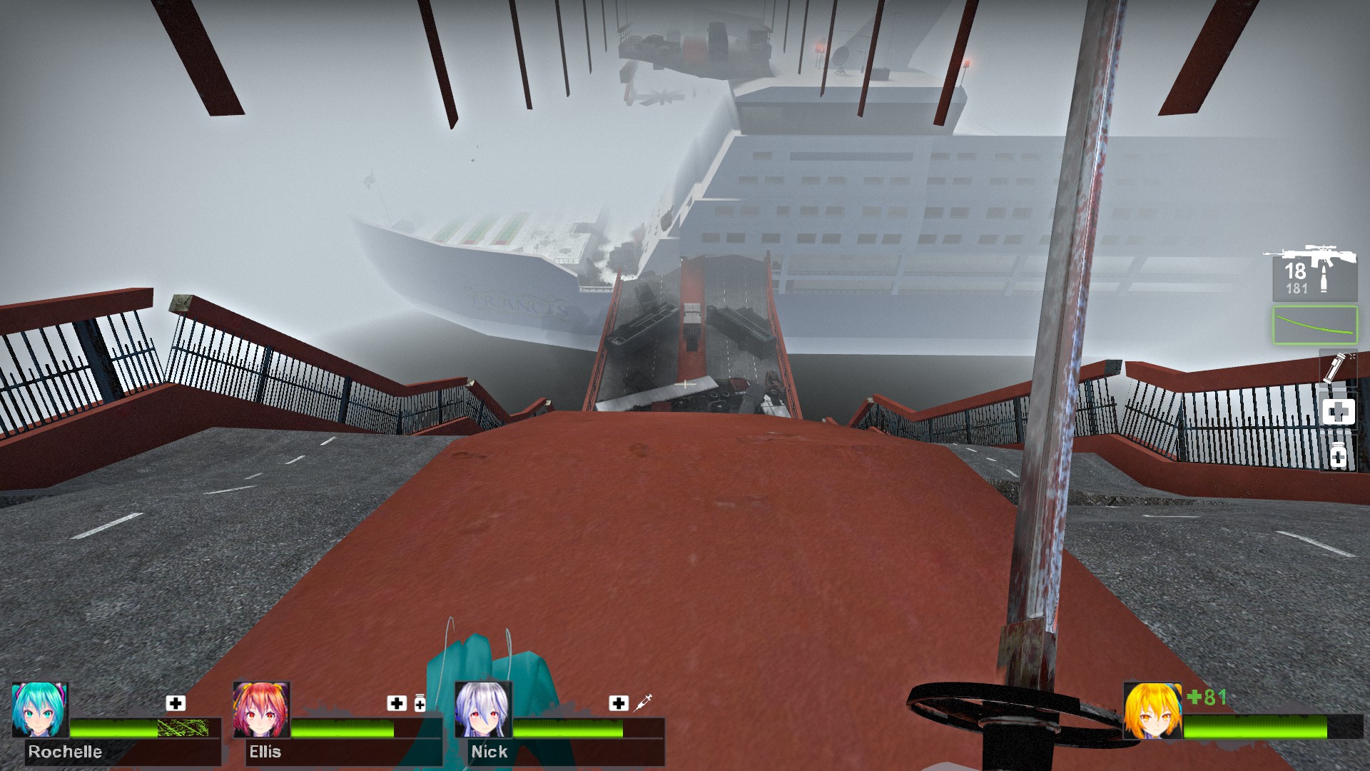 于是到了游轮上了。目测因为这些不是游戏native的模型,开始觉得略卡了,然后崩了。。(所以上面有第二次玩